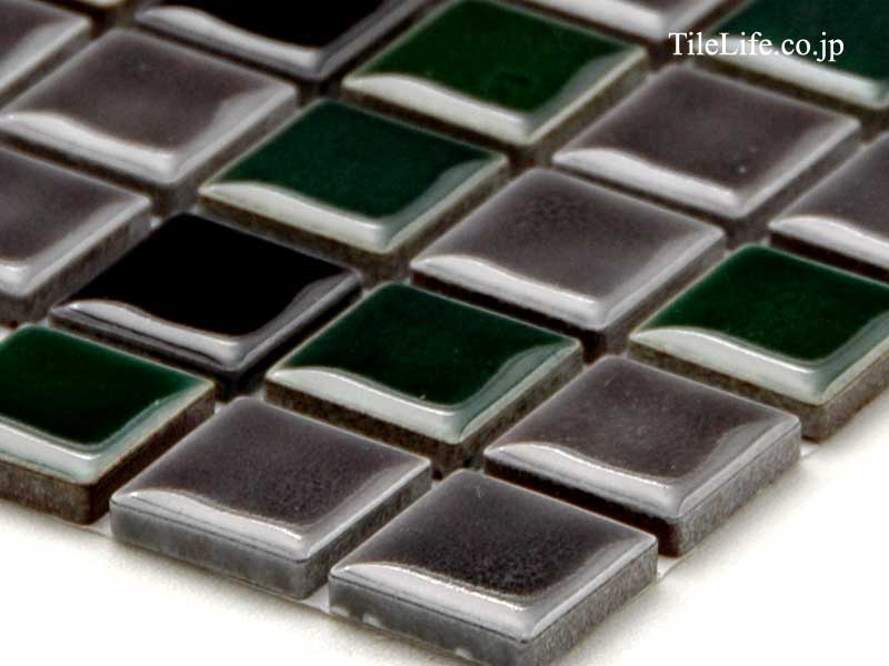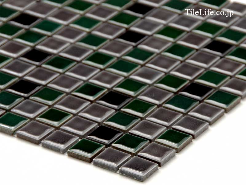釉薬が生み出す淡い色調とつややかな光沢が魅力の施釉モザイクタイル。