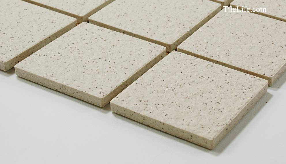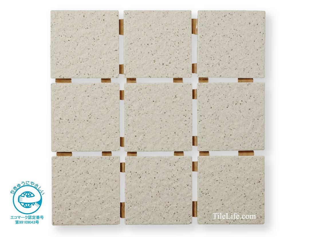 エコマークを取得したタイル(再生原料比率 51%):採石廃土・窯業廃土(キラ)を利用したリサイクルタイルです。
