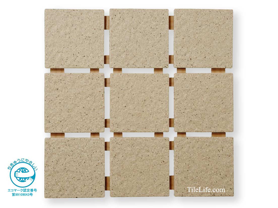 エコマークを取得したタイル(再生原料比率 51%):採石廃土・窯業廃土(キラ)を利用したリサイクルタイルです。