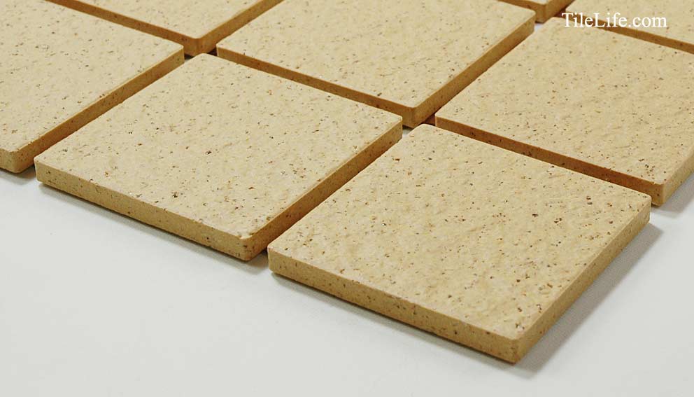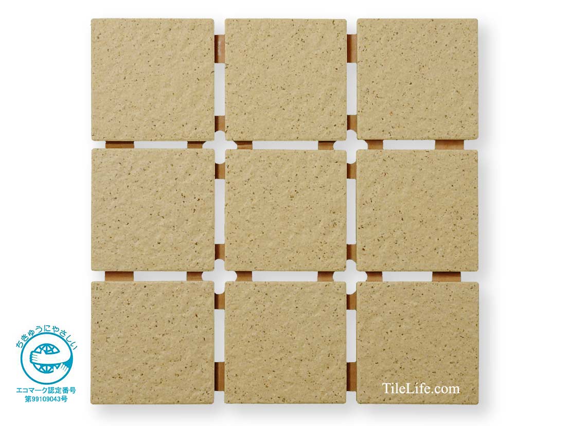 エコマークを取得したタイル(再生原料比率 51%):採石廃土・窯業廃土(キラ)を利用したリサイクルタイルです。