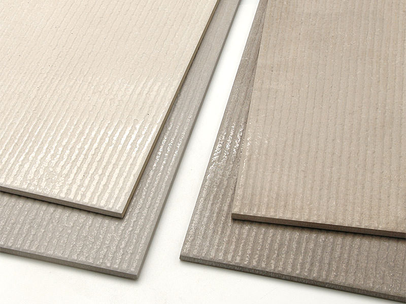 ナチュラルで柔らかな風合いの大判床タイル。 600角の平面と、600×300角の筋面、筋面(半磨き)の3面状があります。