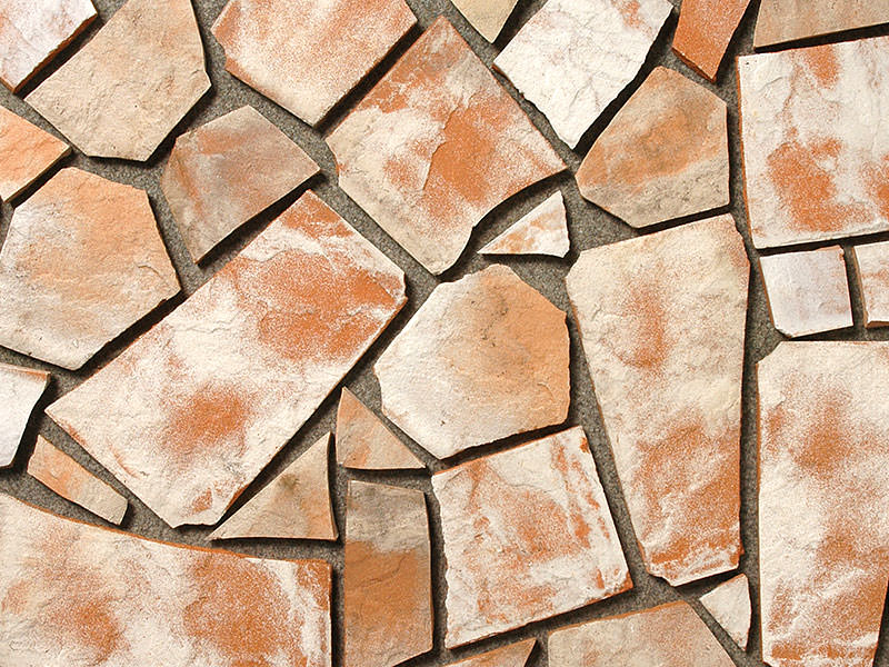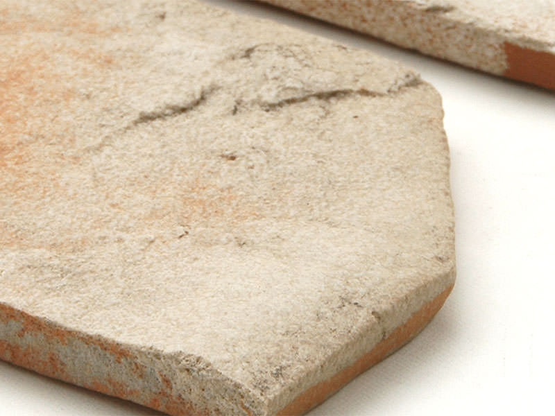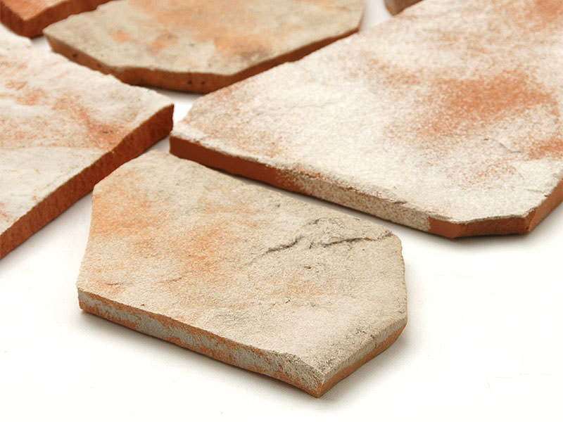 乱形石風にするためタイルを生地の段階で割って乱形にした後で焼成しています。