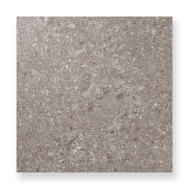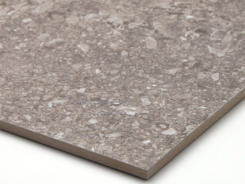 人造大理石(テラゾー)風の柄に天然石の割肌の風合いをプラスした個性的なタイルです。
