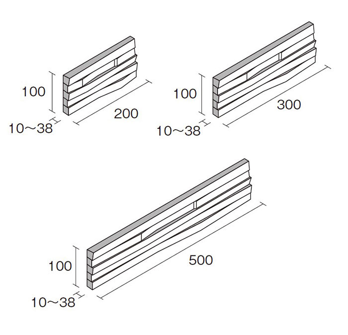 フラットタイプ:約500×100mm、約300×100mm、約200×100mm