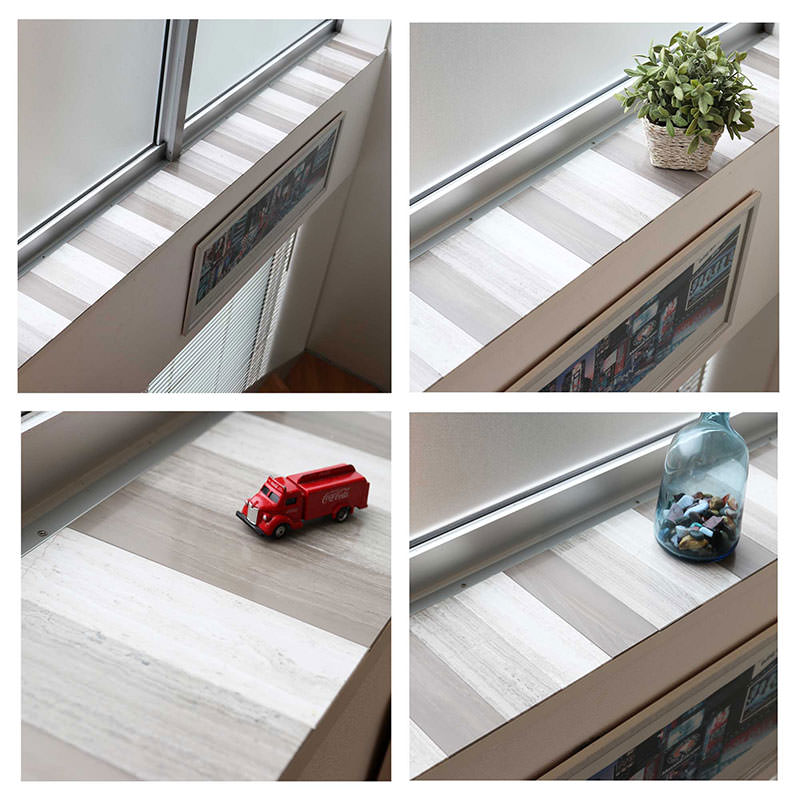 4mmと極薄の100%天然大理石の裏面に粘着シールがついた貼るだけ大理石タイル。