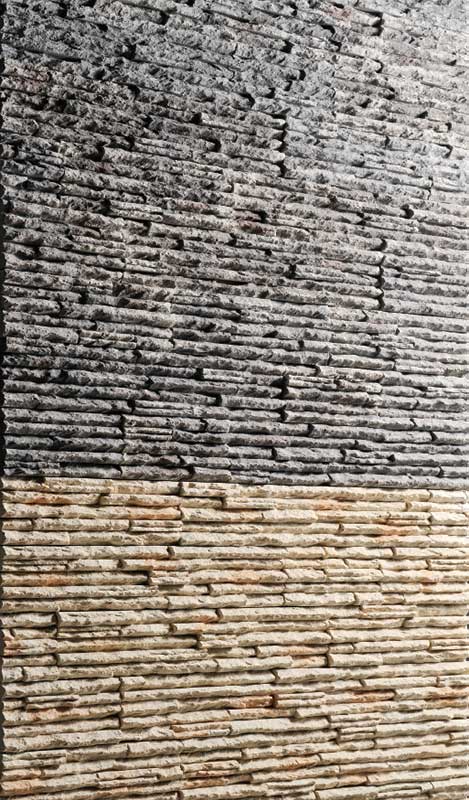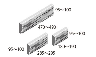力強く、こだわりの面状が生み出す壁面は圧倒的な重厚感と個性を創造します。 <注意点> ●特徴ある意匠をつくるため、寸法・形状に大きなバラツキをもたせてあります。 ●大きな色幅が特徴の製品です。 ご採用にあたってはサンプルをご確認ください。 ●平物は大、中、小3種類のサイズが1:1:1の比率で梱包しています。 ●ご注文はケース単位にて承ります。 ●接着剤張り工法専用製品です。 ●塗り目地施工はできません。 ●施工前に仮置きをし、全体のバランスをおとりください。 ●セメント成型品のため、成型時の収縮による誤差があります。 ●形状に多少の寸法誤差があるため、施工の際に最低2mm程度の目地をおとりください。 ●セメント製品の特質上、年数を経て色が変化することがあります。 この特徴を十分にご理解の上ご採用願います。 ●接着剤張工法専用のためモルタル施工はできません。
