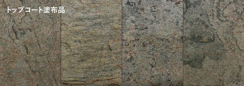 薄型天然石シートの屋外や水廻りにも使用できるトップコート塗布品。
