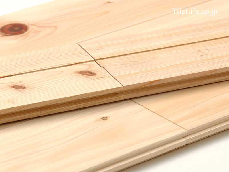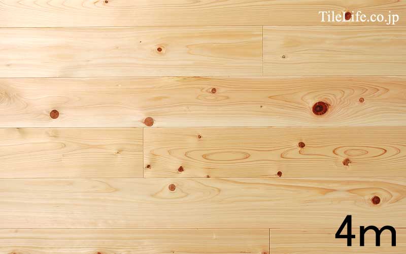 吉野桧を使用し、光沢のあるしっとりとした無垢材のフローリング、無塗装品。