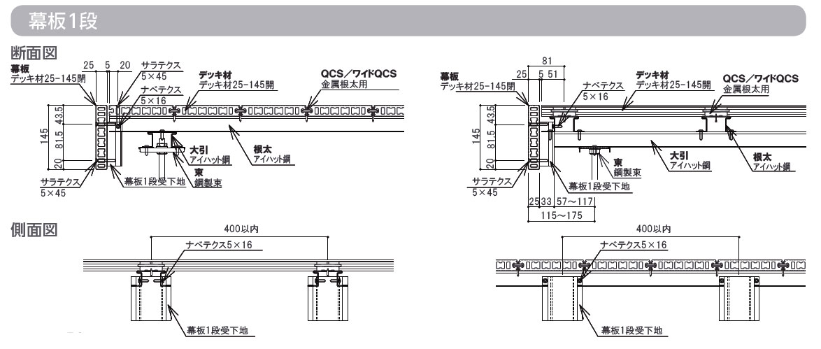 デッキ木口側、木端側共通使用可能 アイハット鋼・低床アイハット鋼に取り付けるスリットがプレ加工されているため、容易に取り付け可能です。 木口側、木端側に共通仕様可能です。