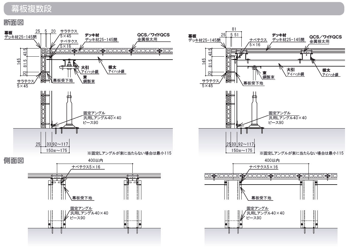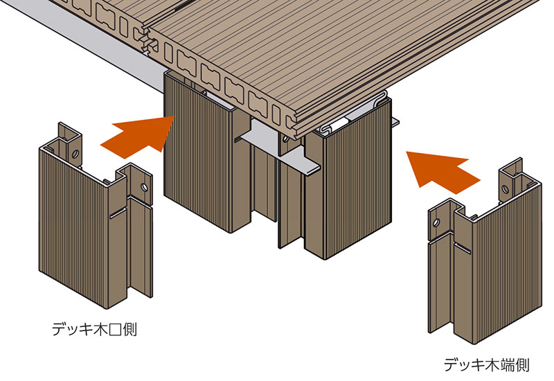 デッキ木口側、木端側共通使用可能 アイハット鋼・低床アイハット鋼に取り付けるスリットがプレ加工されているため、容易に取り付け可能です。 木口側、木端側に共通仕様可能です。