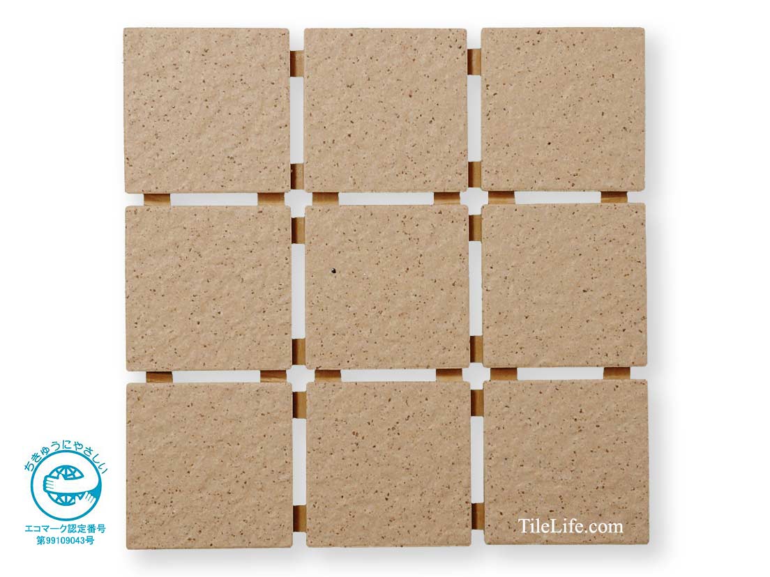 エコマークを取得したタイル(再生原料比率 51%):採石廃土・窯業廃土(キラ)を利用したリサイクルタイルです。