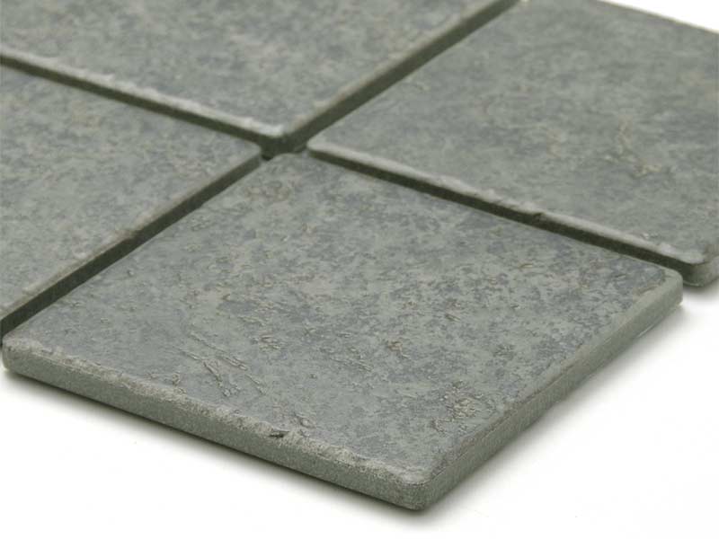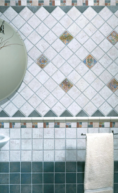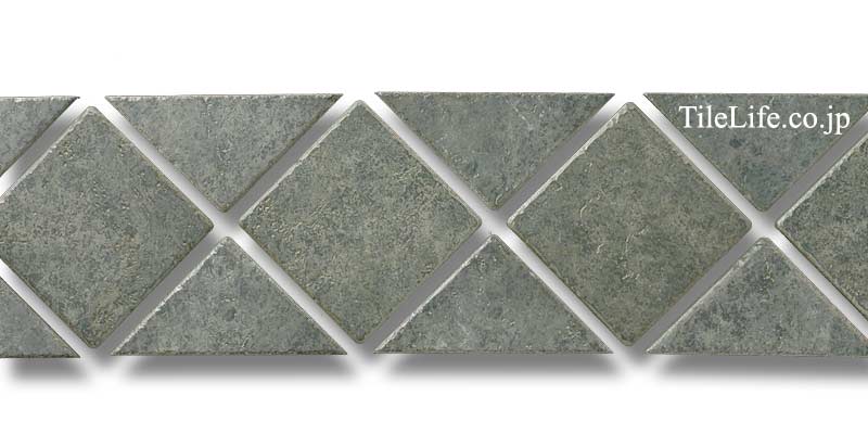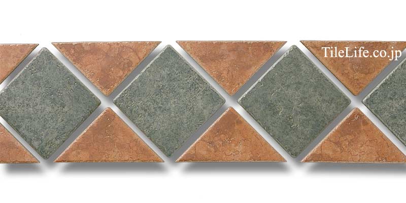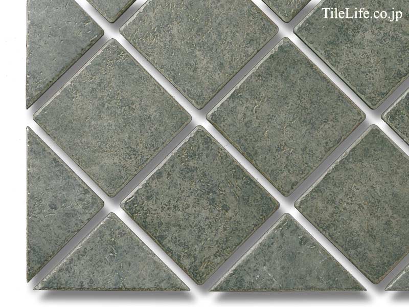 緑色のイタリアのアンチーク風タイルを選びました。中のタイルと外のタイルを合わせようとして結果、変わったデザインに