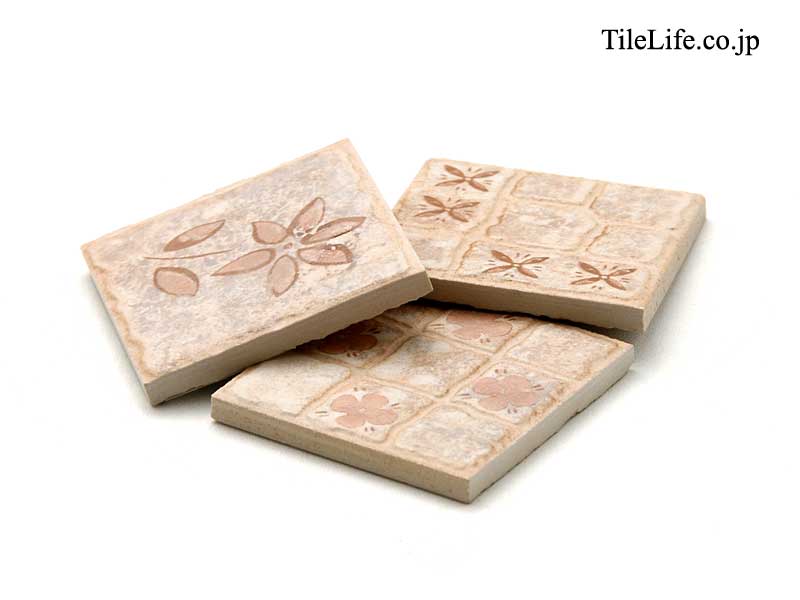 - 花柄アクセントタイル ランダムミックス 75角 ベージュ系