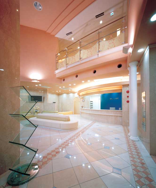 シャワールームは2Fですが、1FはCAFEのスタジオとして入口周りにタイルを使いました。
