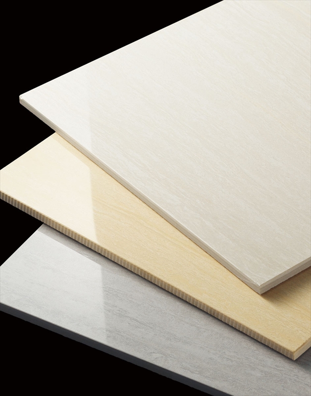 高品位・高品質の磁器セラミックス磨きタイル。繊細な流れ模様の石柄で高級感を演出します。