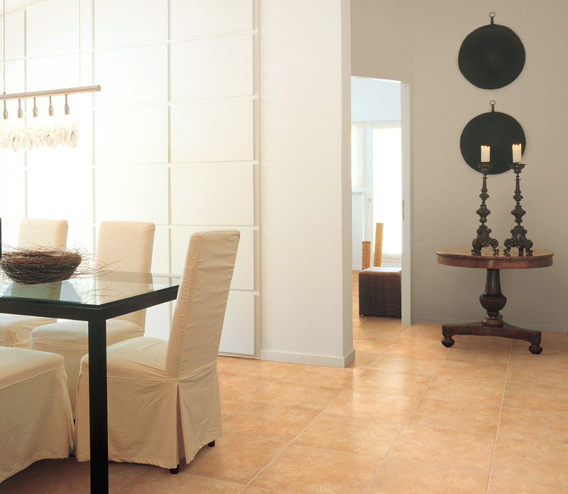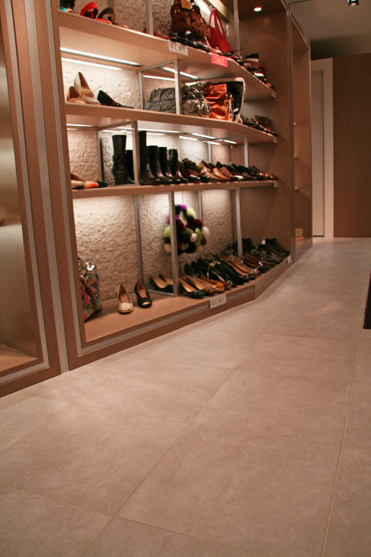 アースカラーの大板床タイル。