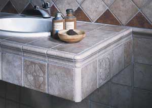緑色のイタリアのアンチーク風タイルを選びました。中のタイルと外のタイルを合わせようとして結果、変わったデザインに