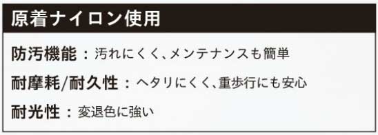 色あせしにくい原着ナイロンを使用しているので汚れにくく、メンテナンスも簡単。
