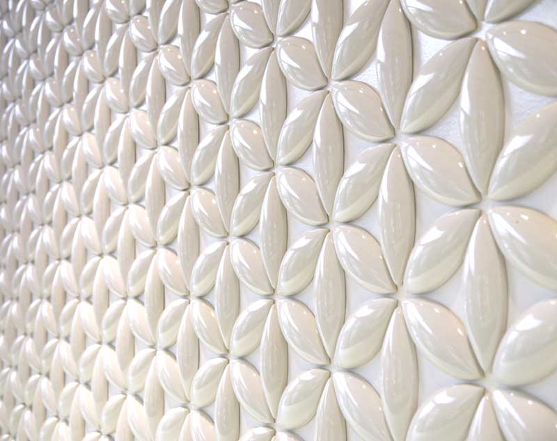 店舗装飾などに多数使用されている立体型タイルに白のブライトカラーが登場。