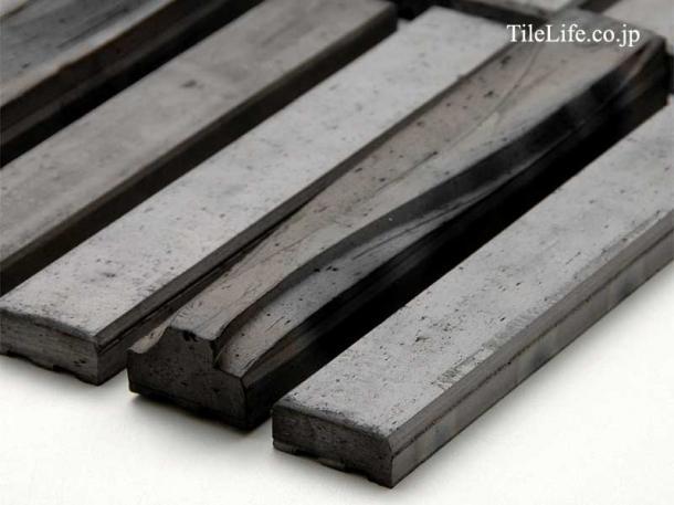 流れるような立体模様が入ったタイルと、シンプルな平面タイルがミックスされています。