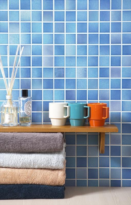 光沢と色調の変化がスタイリッシュな空間を演出するモザイクタイル。