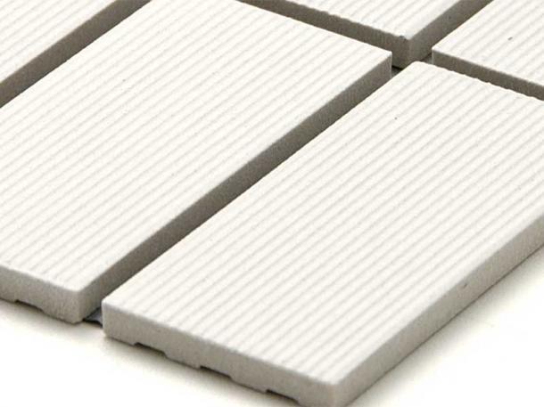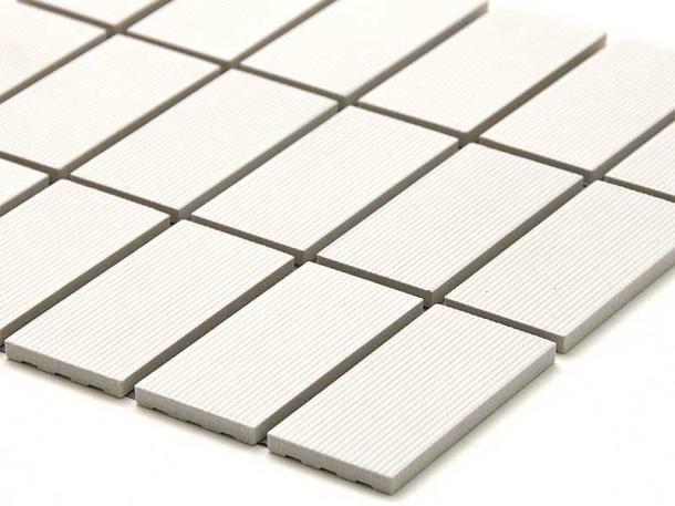 外装モザイクタイル 45二丁 横筋面 スダレ貼り ホワイト系
