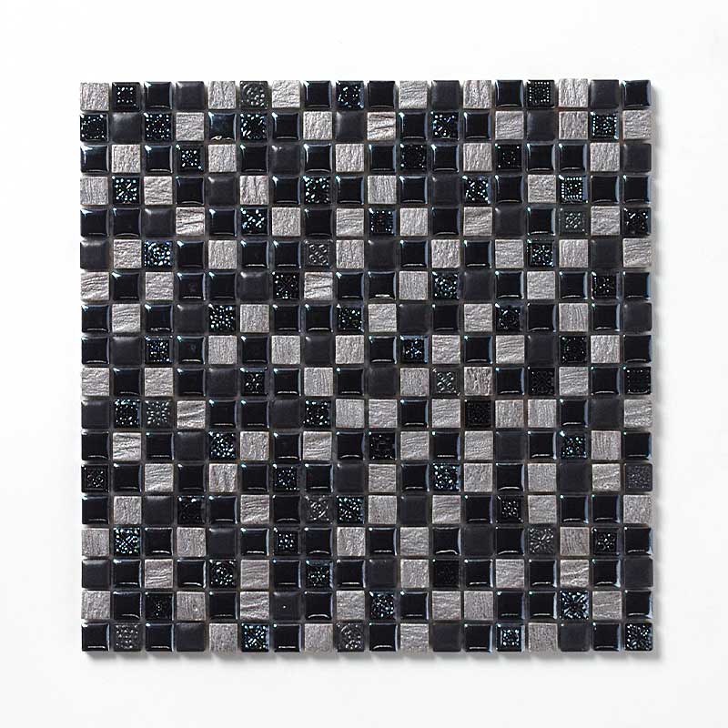 デザインモザイクタイル 15角 裏面ネット貼り ブラック系ミック…