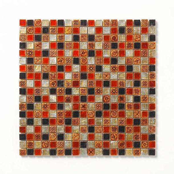 デザインモザイクタイル 15角 裏面ネット貼り レッド&メタ…