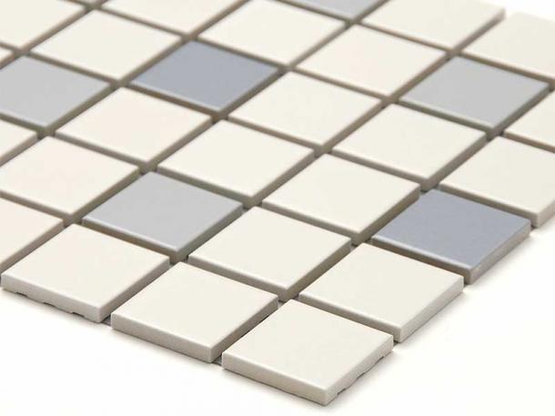 外装モザイクタイル 50mm角(45角)平 表面紙貼り ライトグレー系…