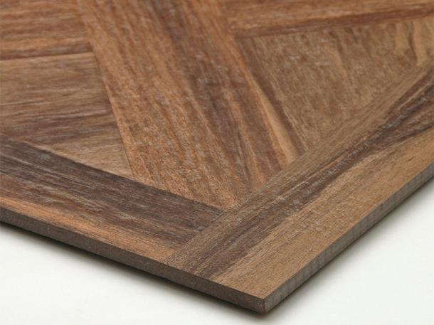 パーケットと呼ばれる寄木張りの床を再現した珍しい木目調タイル !