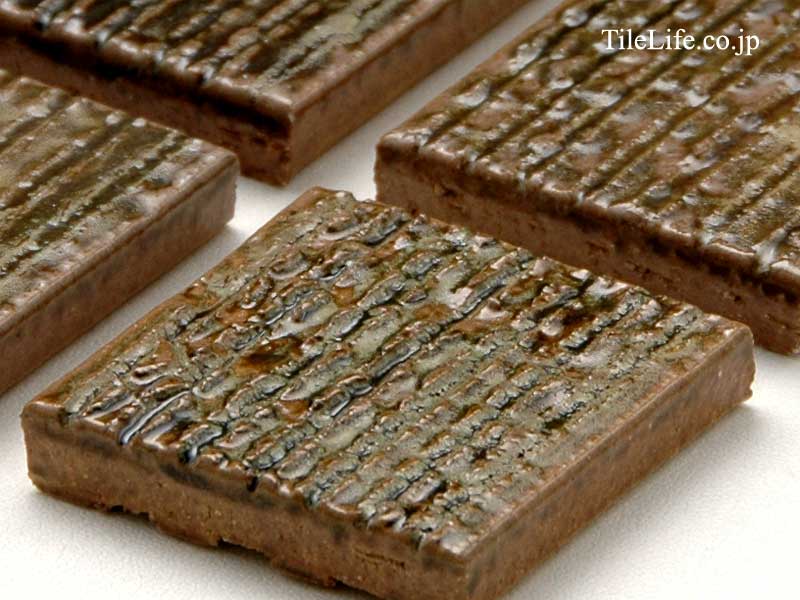 釉薬をスクラッチ面にたっぷりと施したデザイン性の高い壁タイル。
