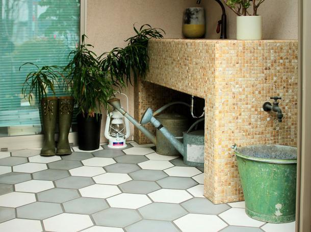 焼成品であるタイルとは違い、セメント特有のしっとりとした質感&肌触りが特徴。
