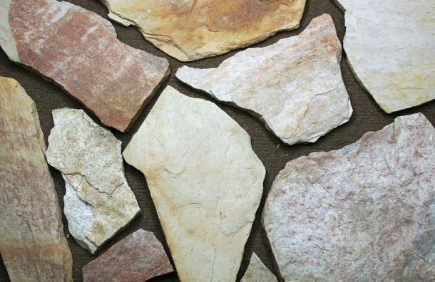イエロー系やピンク系など様々な色の変化が見られる乱形石材 !