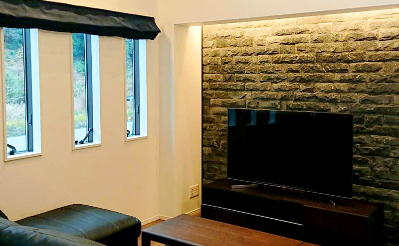 幅は一定で、長辺の長さが乱尺になっておりリズム感のある壁面になります。