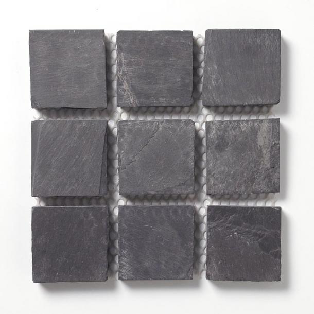 ピンコロ石 90角 裏ネット貼り ブラック系(粘板岩(スレート)) _…