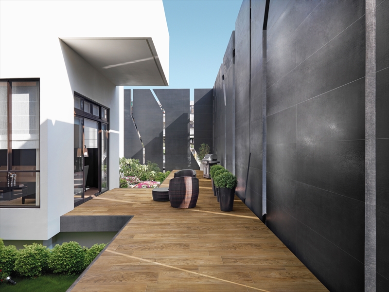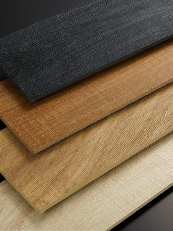 デジタルインクジェット施釉技術によりリアルな木目柄とハンドメイドによるラフな表情が融合した木目調タイルです。