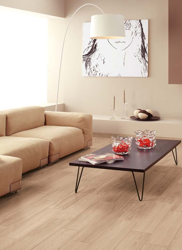 天然木の板目模様や節までも忠実に再現したデジタルインクジェット施釉の木目タイル。