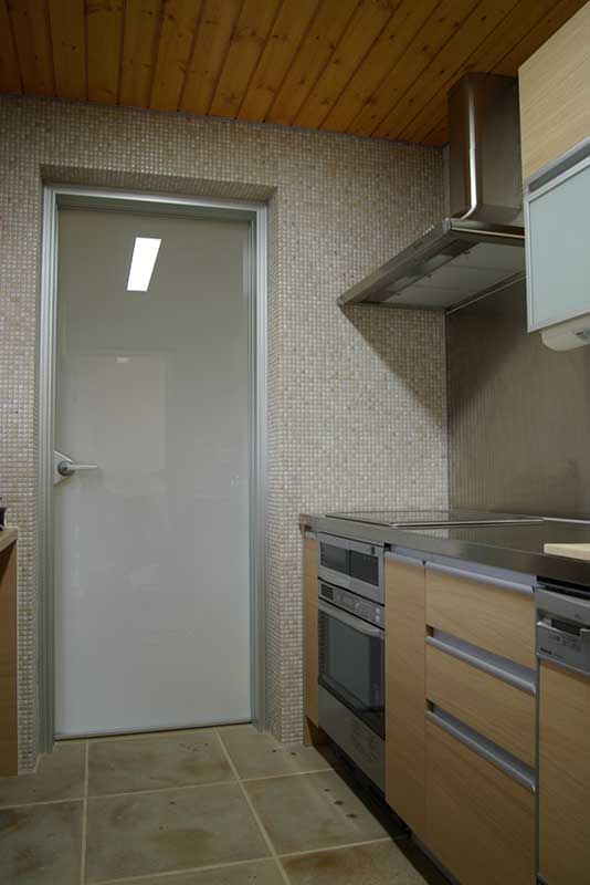 耐熱レンガのお化粧直しに、タイル張りを施工してみました。少し地味すぎたかな?