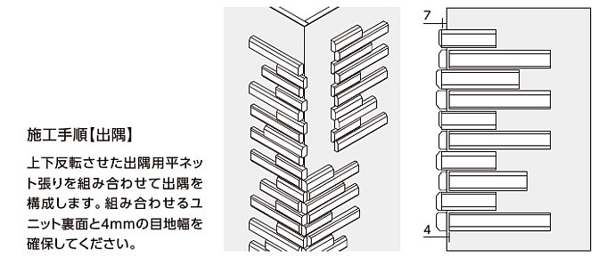 ●ユニット品の設定目地幅は縦4mm・横3mmですが、タイル寸法公差などによるバラツキがあります。