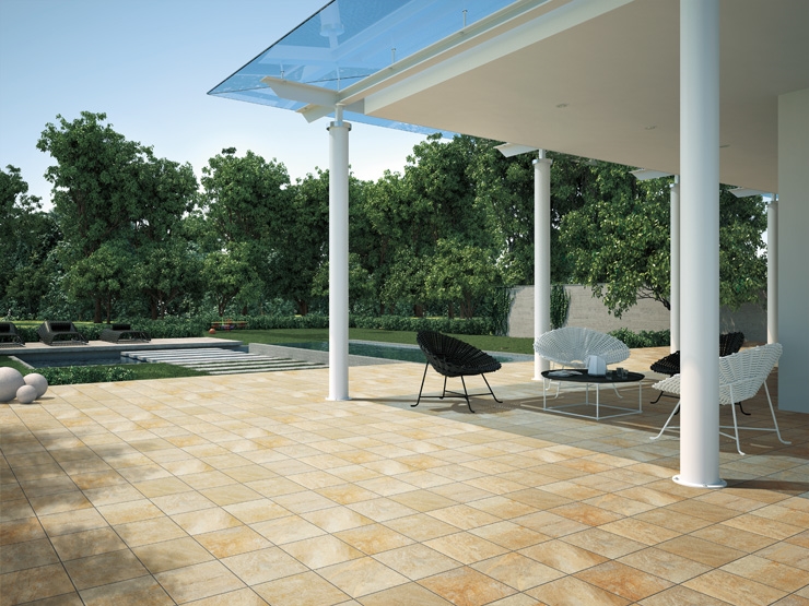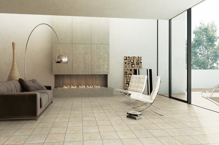 内部と外部を同一意匠で表現可能なクォーツサイト調床タイルです。