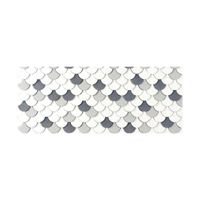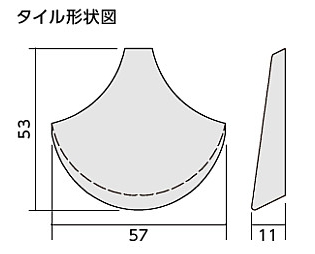ウロコのように重なり合うイメージのタイルです。 エントランス等のアクセントにお薦めです。 商品の留意点 ●接着剤張り専用商品です。 ●目地詰めはできません。 ●キッチンバック等では使用できません。 ●生産ロット単位、形状間、および1枚ごとなどに色合いが異なる場合があります。 ●細目地の間から連結材が見えます。タイルの連結材の色はグレーにしていますので、接着剤はG3色をご使用ください。 ●シートの設定目地幅は2.0mmですが、タイル寸法公差・形状特性によるバラツキがあります。 ●切断せず納まるように割り付けてください。やむを得ず切断する場合は、切断端部が鋭利になり危険ですので、切断面を装飾見切り材(壁用)(P.716)でカバーするなど、必ず安全面のご配慮をお願いします。 ●細目地の間から接着剤のクシ目が見えることがあります。 ●標準価格およびあたり枚数にロスは含まれていません。 施工上のご注意 ●切断する場合は、切断部が動かないように養生テープ等で固定後、電動丸ノコを用いて切断してください。