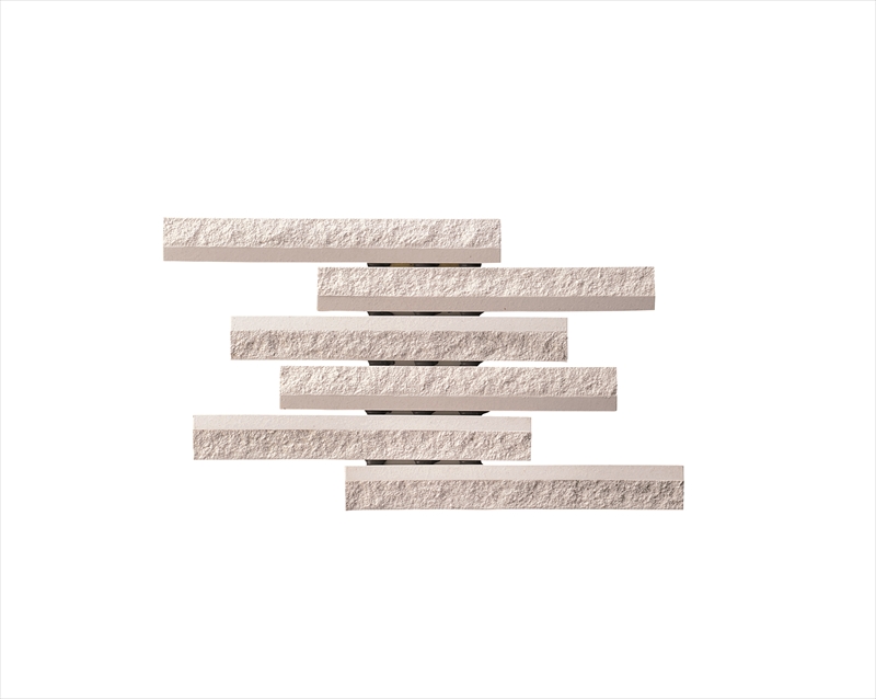 割肌とフラット面のコンビネーションが光の恩恵を生かし、壁面に輝きを与えます。 【注意事項】 ●焼きもの特有の色幅があります。 ●ボーダーユニットは細目地の間より裏ドットが見えます。 ドットの色はグレーです。 【施工上のご注意】 ●ボーダーユニットは接着剤張り工法専用製品となります。 ユニットの目地幅は縦横3mmで裏ドットユニットとなります。 ●水洗いの際、金属性ブラシのご使用は避けてください。