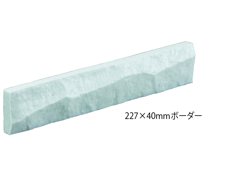 岩のような強固さと野趣あふれるハツリ面。 洗練された都会的なスピリッツがボーダーというサイズに表れ「粋」を感じさせてくれます。 【注意事項】 ●焼きもの特有の色幅があります。 ●役物は全て接着加工となります。 【施工上のご注意】 ●タイル表面にモルタルが付着しないよう十分配慮して施工を行ってください。 ●塗り目地施工はできません。