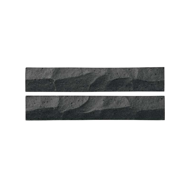 岩のような強固さと野趣あふれるハツリ面。 洗練された都会的なスピリッツがボーダーというサイズに表れ「粋」を感じさせてくれます。 【注意事項】 ●焼きもの特有の色幅があります。 ●役物は全て接着加工となります。 【施工上のご注意】 ●タイル表面にモルタルが付着しないよう十分配慮して施工を行ってください。 ●塗り目地施工はできません。
