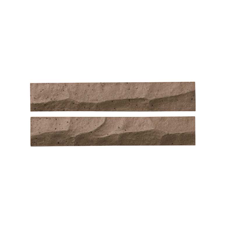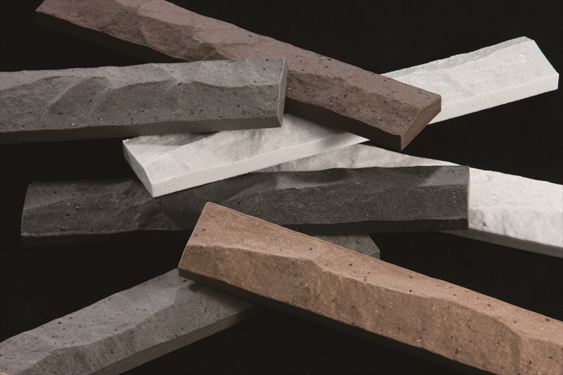 岩のような強固さと野趣あふれるハツリ面。 洗練された都会的なスピリッツがボーダーというサイズに表れ「粋」を感じさせてくれます。 【注意事項】 ●焼きもの特有の色幅があります。 ●役物は全て接着加工となります。 【施工上のご注意】 ●タイル表面にモルタルが付着しないよう十分配慮して施工を行ってください。 ●塗り目地施工はできません。