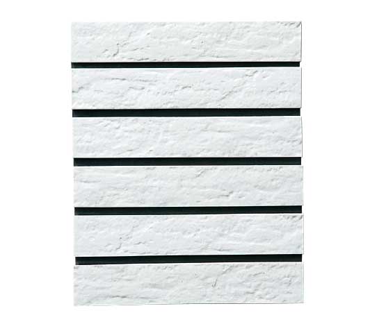 モノトーン系の色と二つの面状は、個性が光るオシャレな壁面を創ります。 【注意事項】 ●焼きもの特有の色幅があります。 ●役物は全て接着加工となります。 【施工上のご注意】 ●塗り目地はタイル表面に目地残りする場合があります。 十分配慮して施工を行ってください。 ●施工後は十分な目地洗いを行ってください。