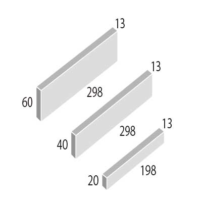 298×60mm、298×40mm、198×20mm 3形状ボーダー 1ケース:298×60mm 15枚、298×40mm 15枚、198×20mm 23枚入り |