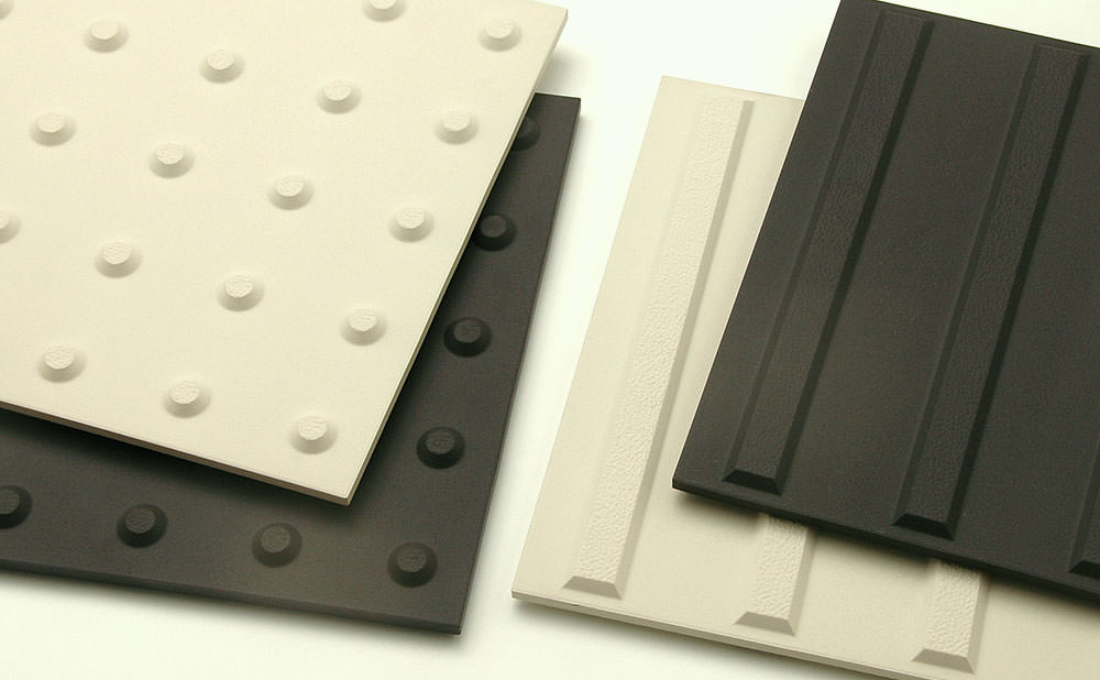 視覚障がい者用タイル 周りが暗いタイルの時に視認性が上がる白系色です。 厚み違いもあります。