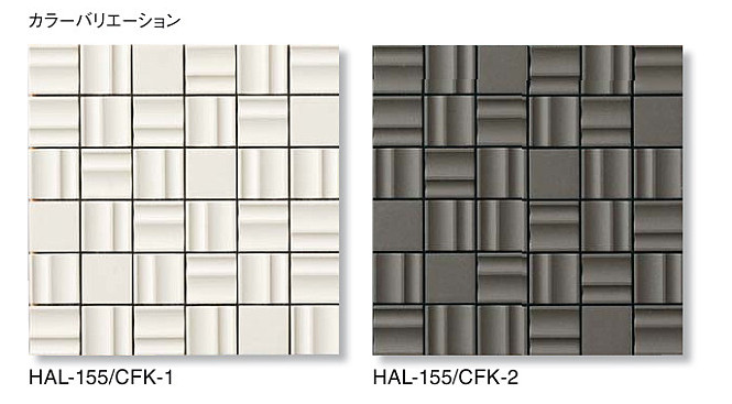 役物タイル > リクシル(INAX) 役物タイル HALALLシリーズ セラヴィオF(溝面スクエア) 90°屏風曲ネット張り(接着) HAL-155/90-15/CFK-2 21318LIX