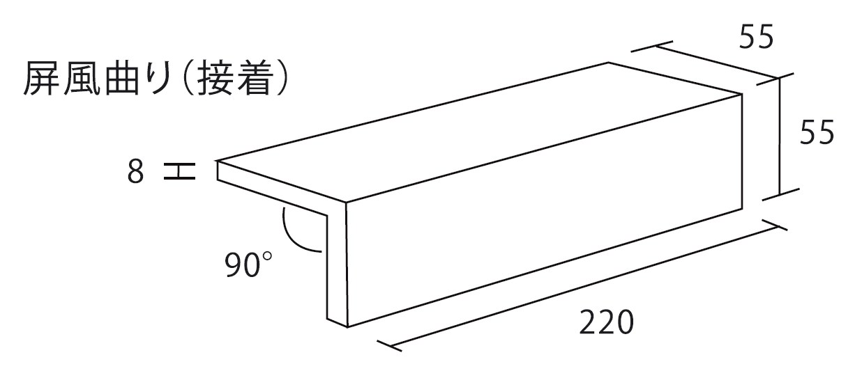 屏風曲がり(接着) サイズ詳細:(55+55)220mm 厚み:8mm |